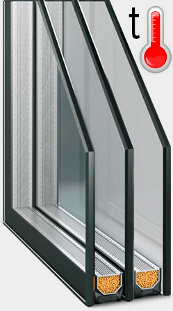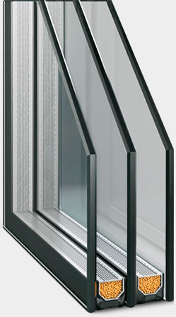 Стеклопакет состоит из трех стекол, расположенных на расстоянии от 8 до 16 мм друг от друга и образующих две камеры. Чем больше ширина между ними, тем лучше теплофизические характеристики. Двухкамерные конструкции устанавливаются в жилых помещениях.