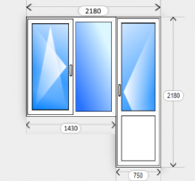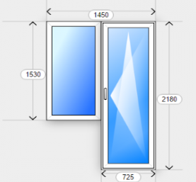 Окно двустворчатое с глухой и поворотно-откидной, дверь поворотная