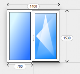 Окно двустворчатое с глухой и поворотно-откидной створкой, дверь поворотная